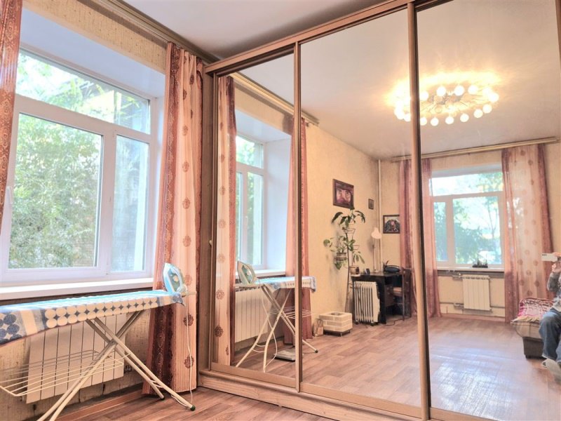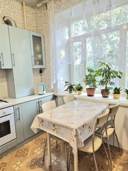 Квартира светлая, просторная с высокими потолками. Есть мебель и необходимая бытовая техника. Окна выходят во двор, во дворе есть детская площадка и парковка для машин.