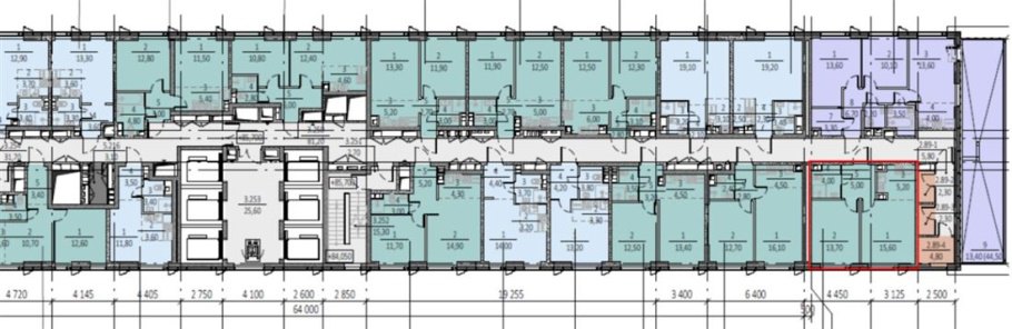 Планировка — спальня 13,7 м² и кухня-гостиная 20,8 м².