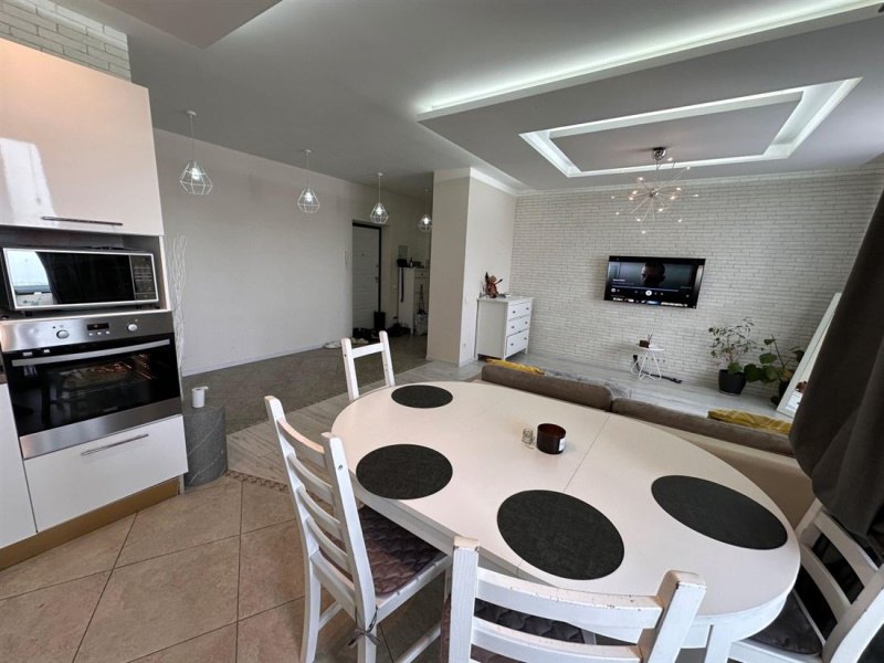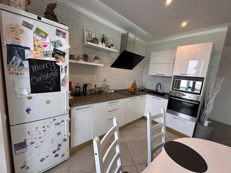 Общая площадь квартиры составляет 62,7 м². Просторная кухня 14 м² — это не только место для готовки, но и уголок для семейных ужинов и дружеских посиделок. Здесь уже установлена вся необходимая техника: электроплита, вытяжка, духовой шкаф.