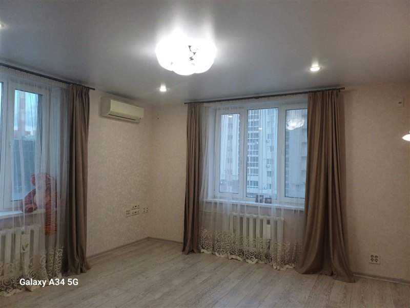 Гостиная 22 м²:Светлая комната с двумя большими окнами выходят на Менделеева и во двор.аудиосистема заложена в стены гостиной,кондиционер,качественные окна,остается диван