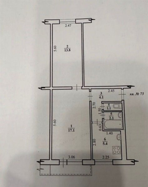 Общая площадь 43.6 м2