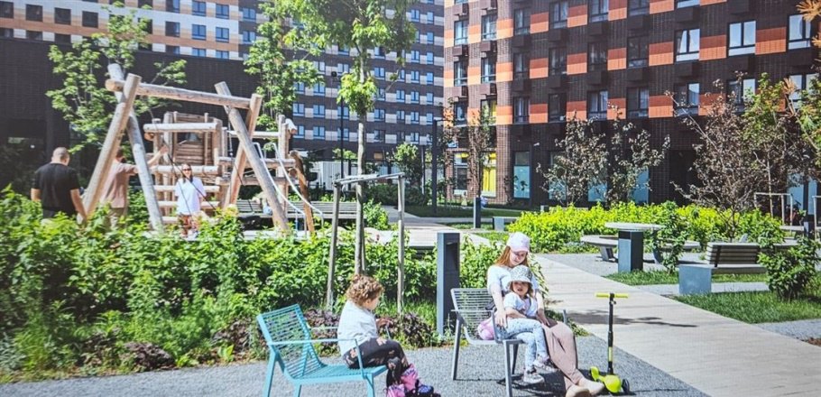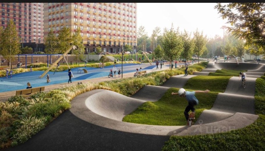 Памп-трек с виражами, качели-гнёзда, прогулочные дорожки и спортивные зоны — пространство, где комфорт встречается с движением.