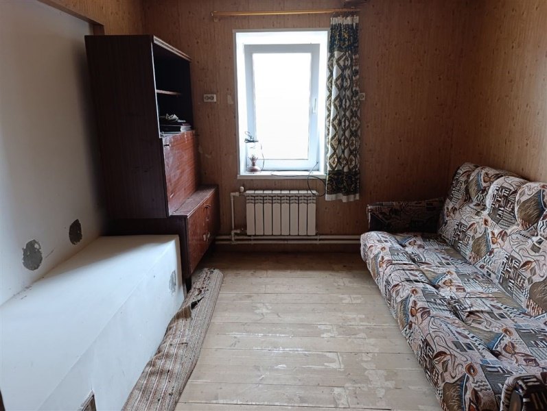 Бревенчатый утеплен , обшит кирпичом, Общая площадь 56,7 кв.м , кухня 7,5 кв.м , комнаты 20+10 кв.м , стеклопакеты. Центральный газ , двухконтурный котел , батареи , центральная вода. Сарай , гараж, баня , маеттдве фазы на дом и гараж , яблони, асфальтированная дорога . Хорошие соседи. Магазины в шаговой доступности , мед пункт, спортивный зал , почта, библиотека . Школа , садик в 10 минутах езды в Сяськелево. Хорошее транспортное сообщение.