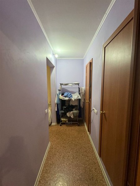 Перенесена мокрая точка. При необходимости можно перенести мокрую точку обратно. На полу линолеум, стены в комнате -обои, в остальных помещениях покрашены, в комнате и кухне потолки натяжные